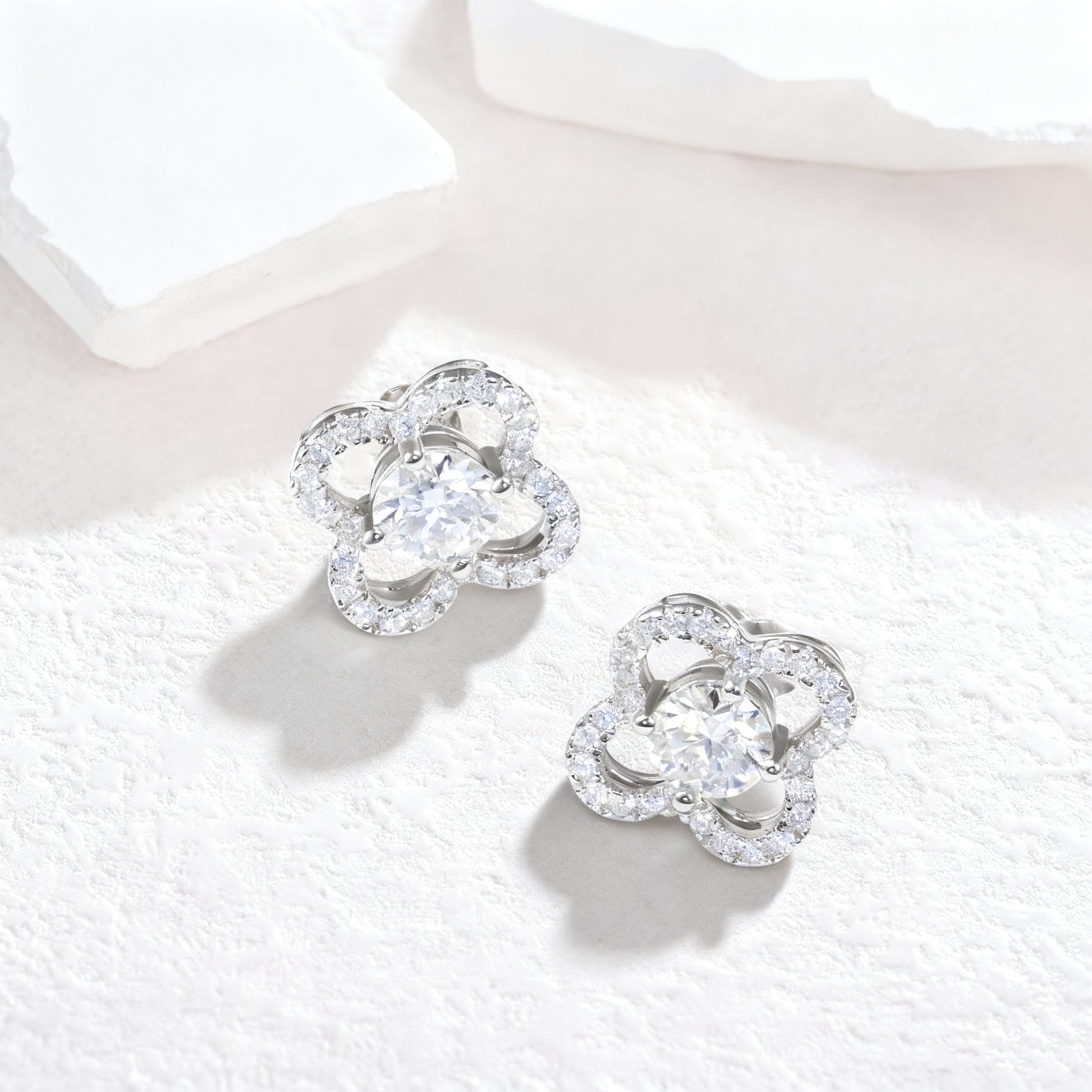 Discover our Four-Leaf Clover Stud Earrings, crafted in 925 silver with 0.5 carats of GRA-certified moissanites. Each clover features precisely set stones in a symbolic design, capturing light from every angle. Meticulously finished with secure backings, these lucky charms blend meaningful elegance with lasting brilliance for everyday wear.